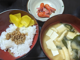 ↑話した朝ご飯はこんな感じです(赤ウインナーが玉子焼きに変わったりしますよ)